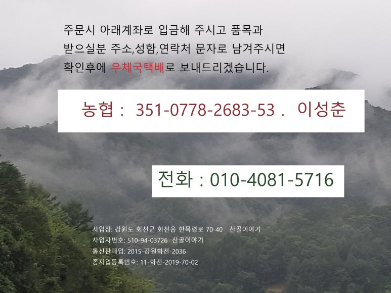 | Company | 산골이야기 (화천의산골이야기) |