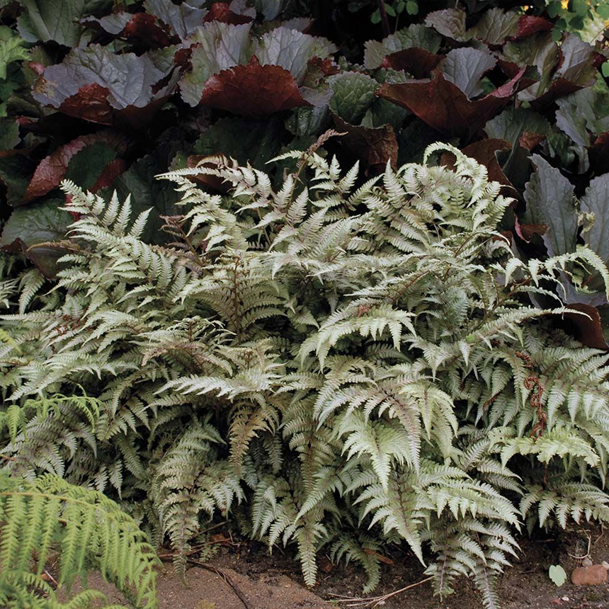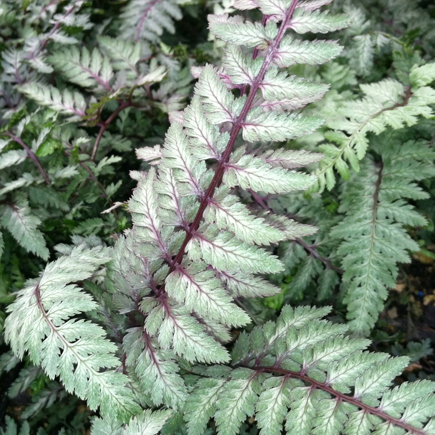 잎에 금속 광택이 돌아 정원용 포인트 식물로 인기가 높습니다.