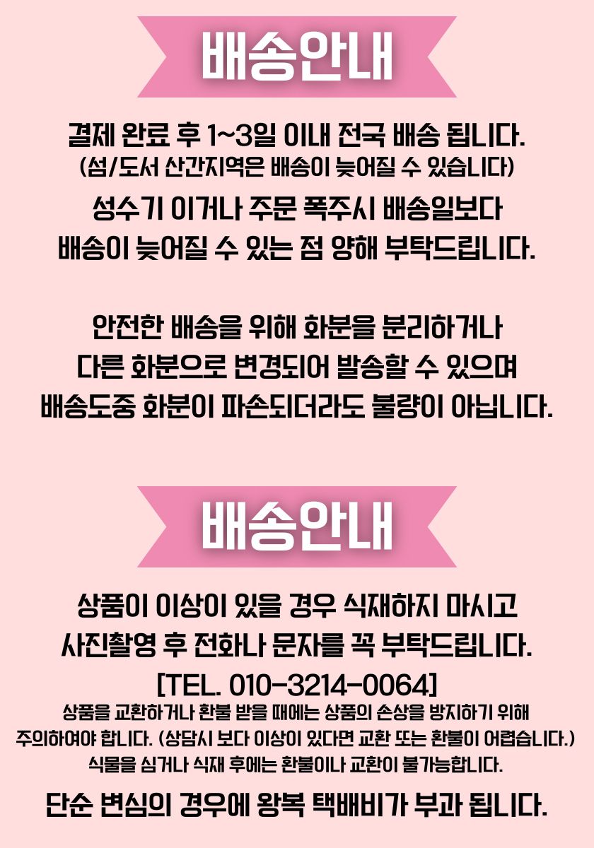 ※ 식물은 식물특성상 사진 이미지와 다를 수 있습니다. 구매시 참조 바랍니다.
